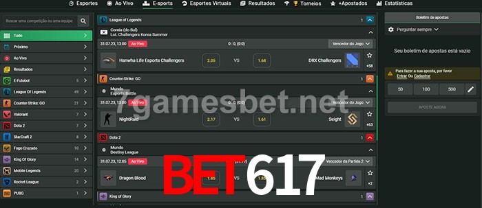A aposta Bet617 oferece aos jogadores a experiência mais conveniente de apostas em eSports!